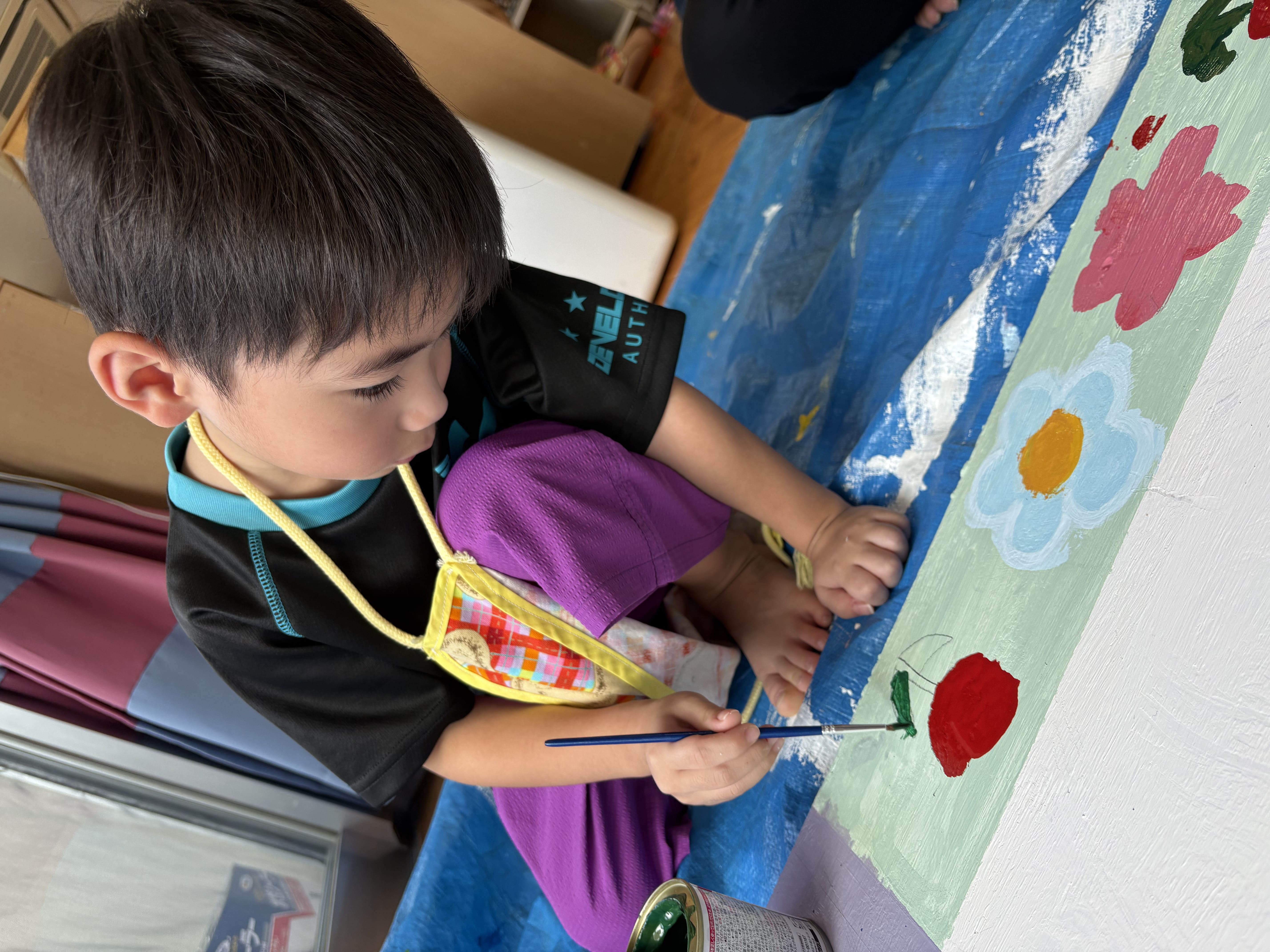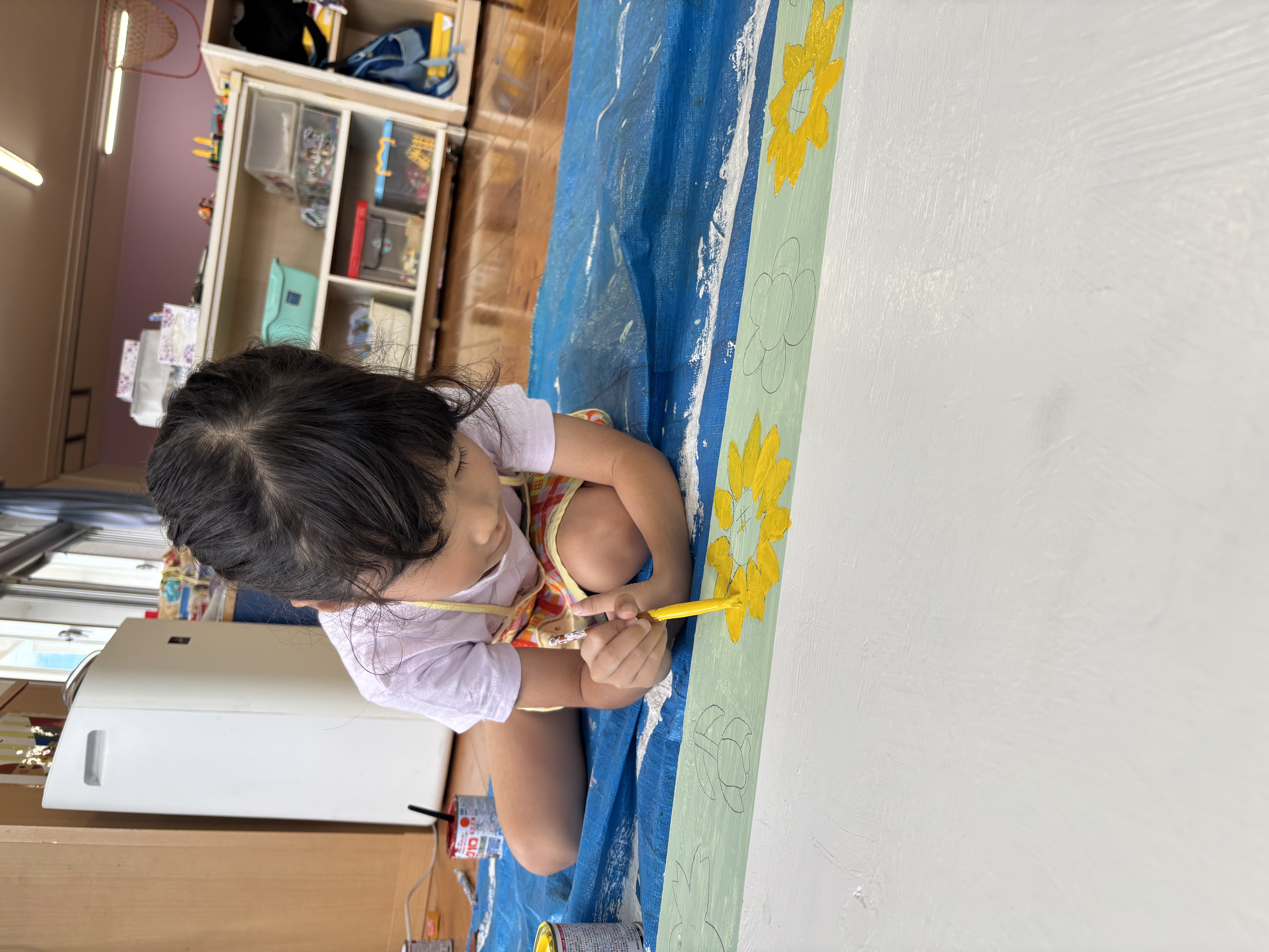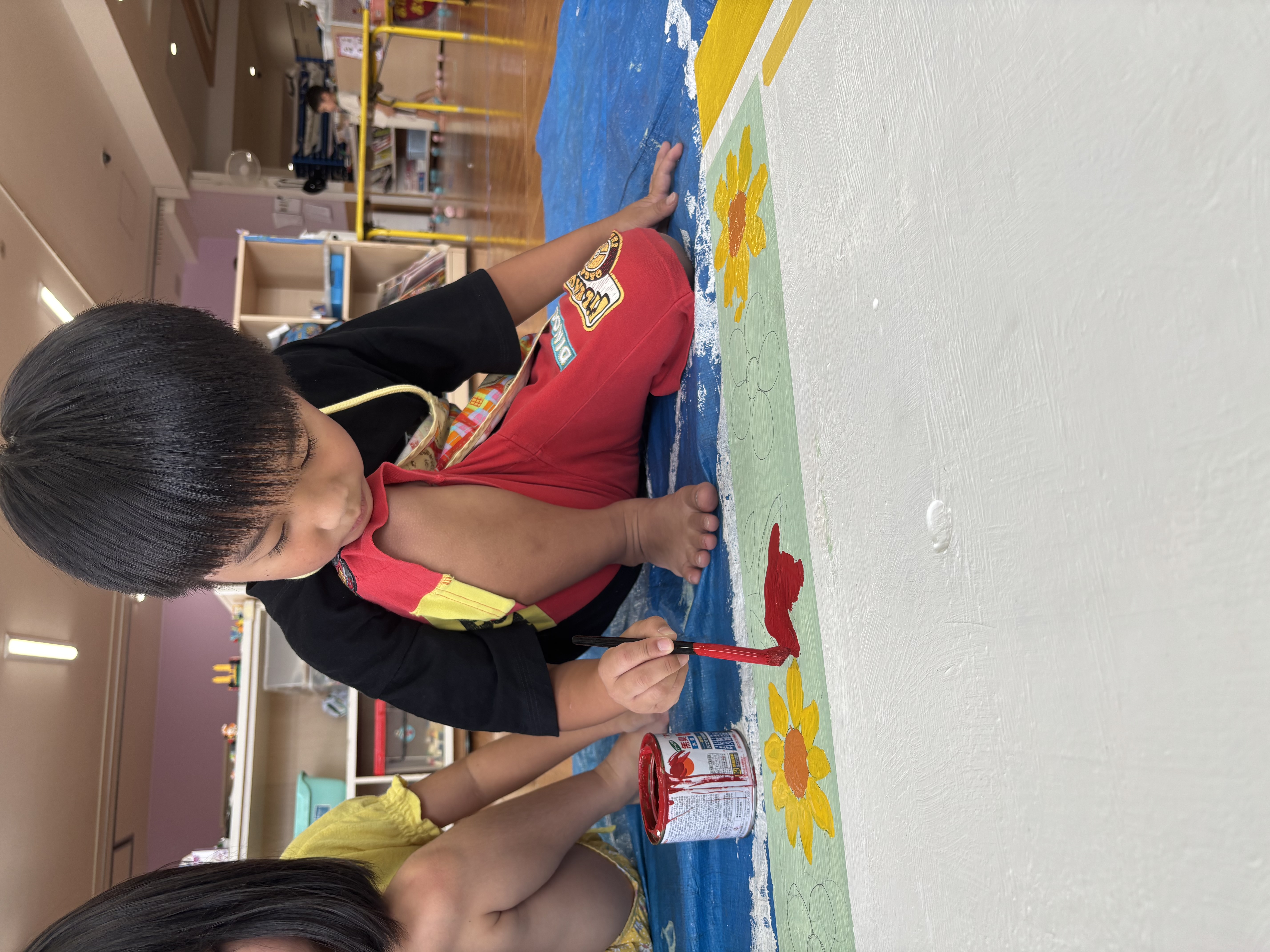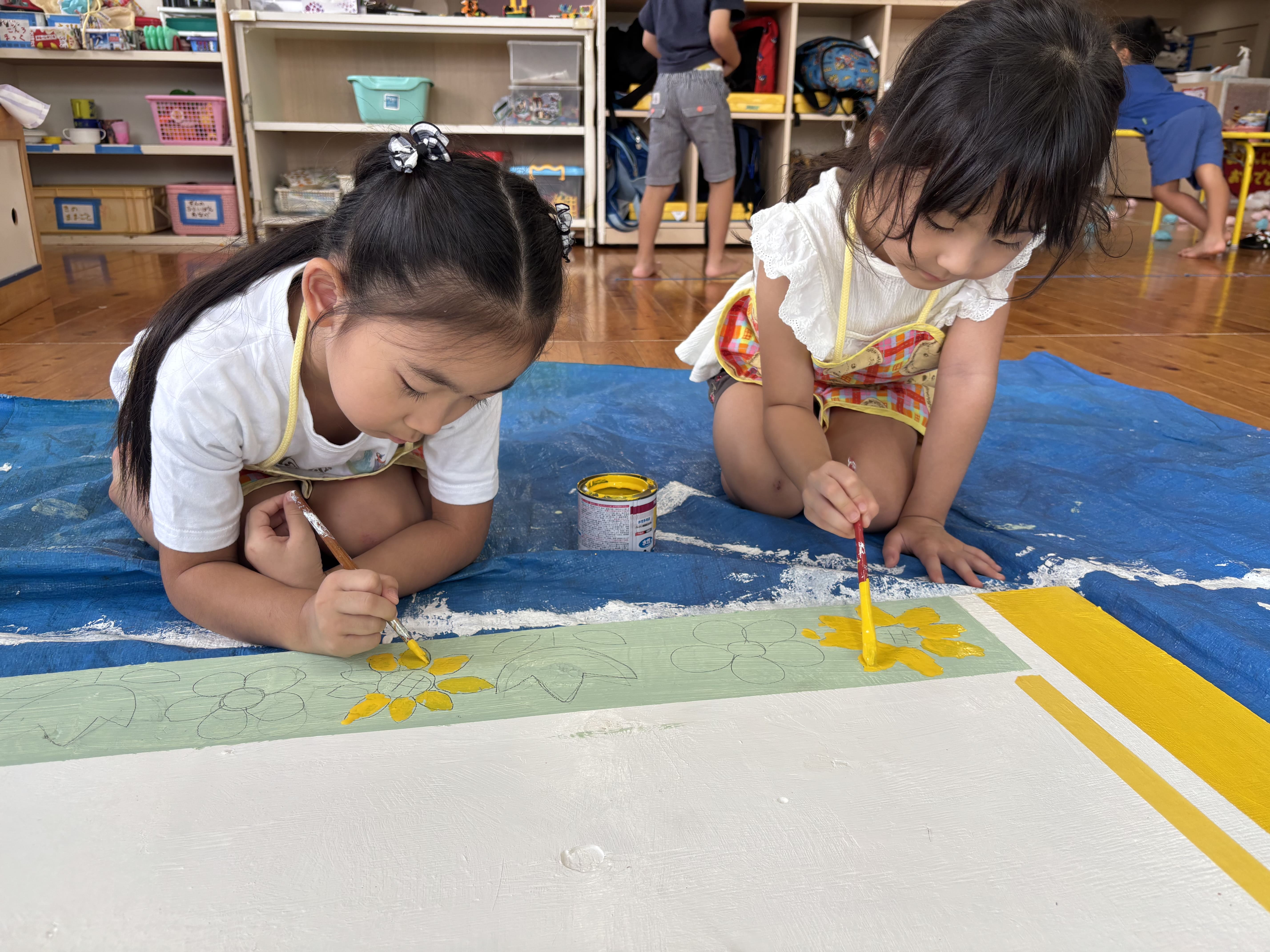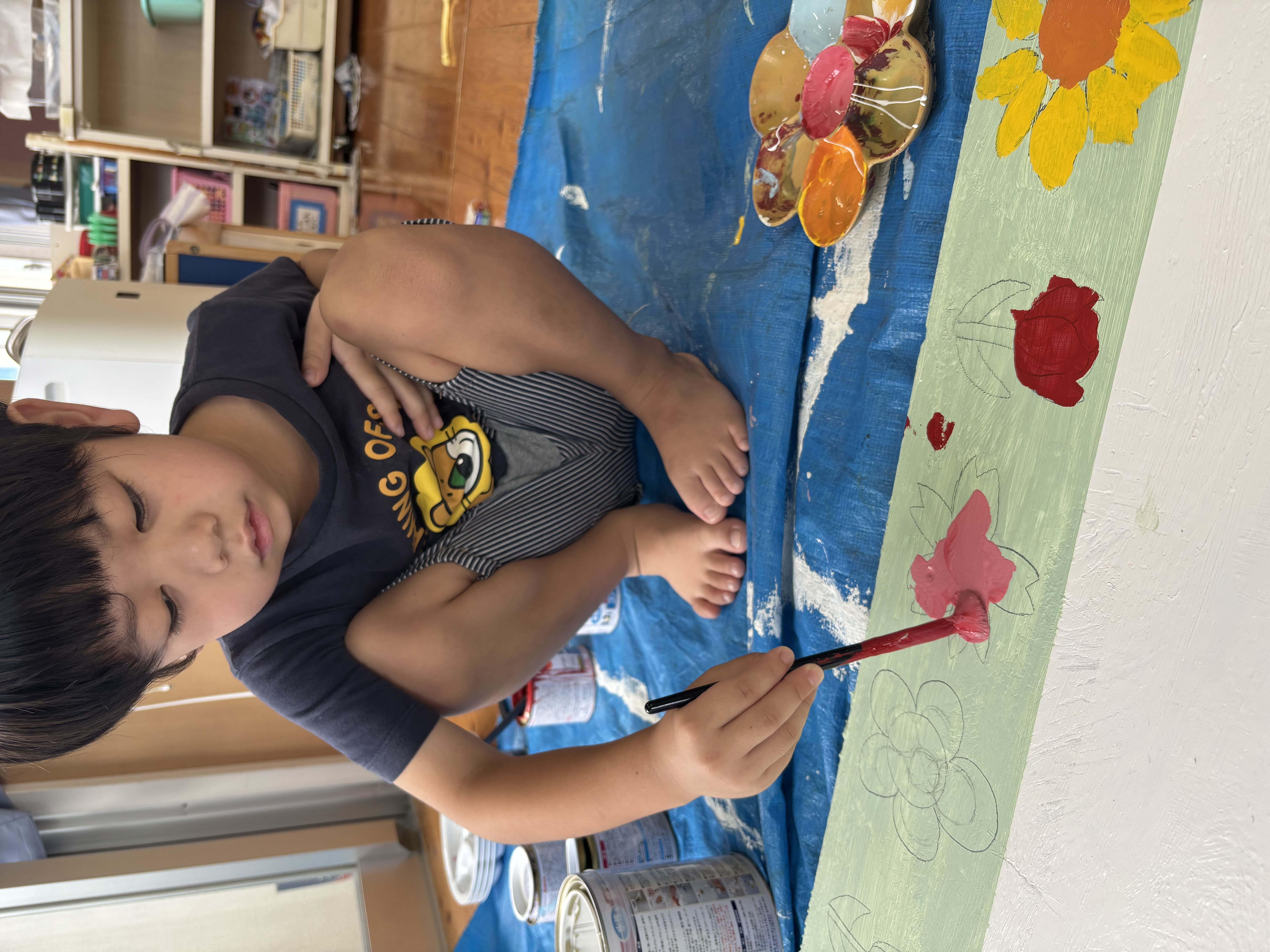 2日目の今日は桜やひまわり、チューリップの花に色を塗りました!だんだんとかわいい掲示板になってきました(^^♪