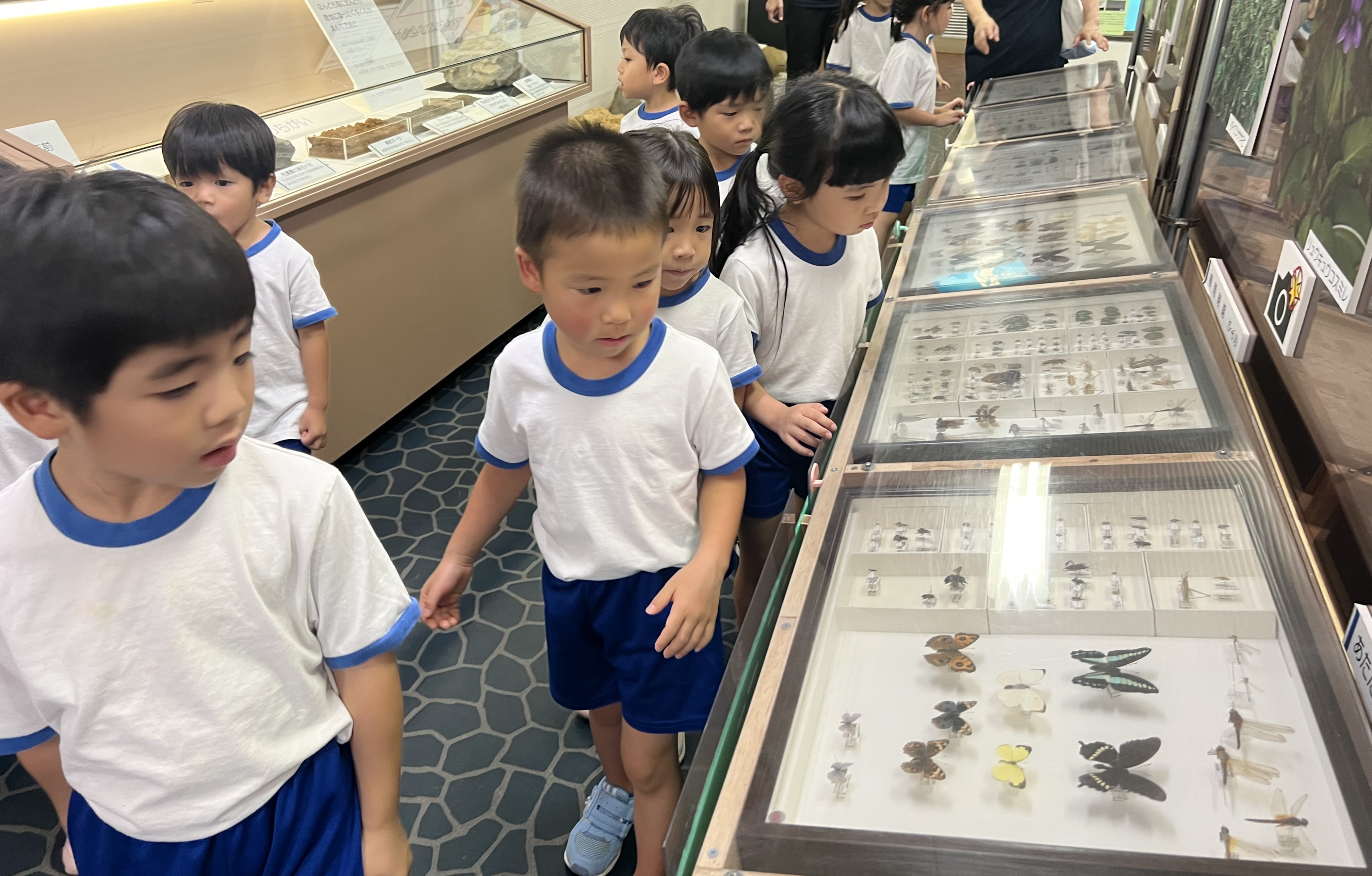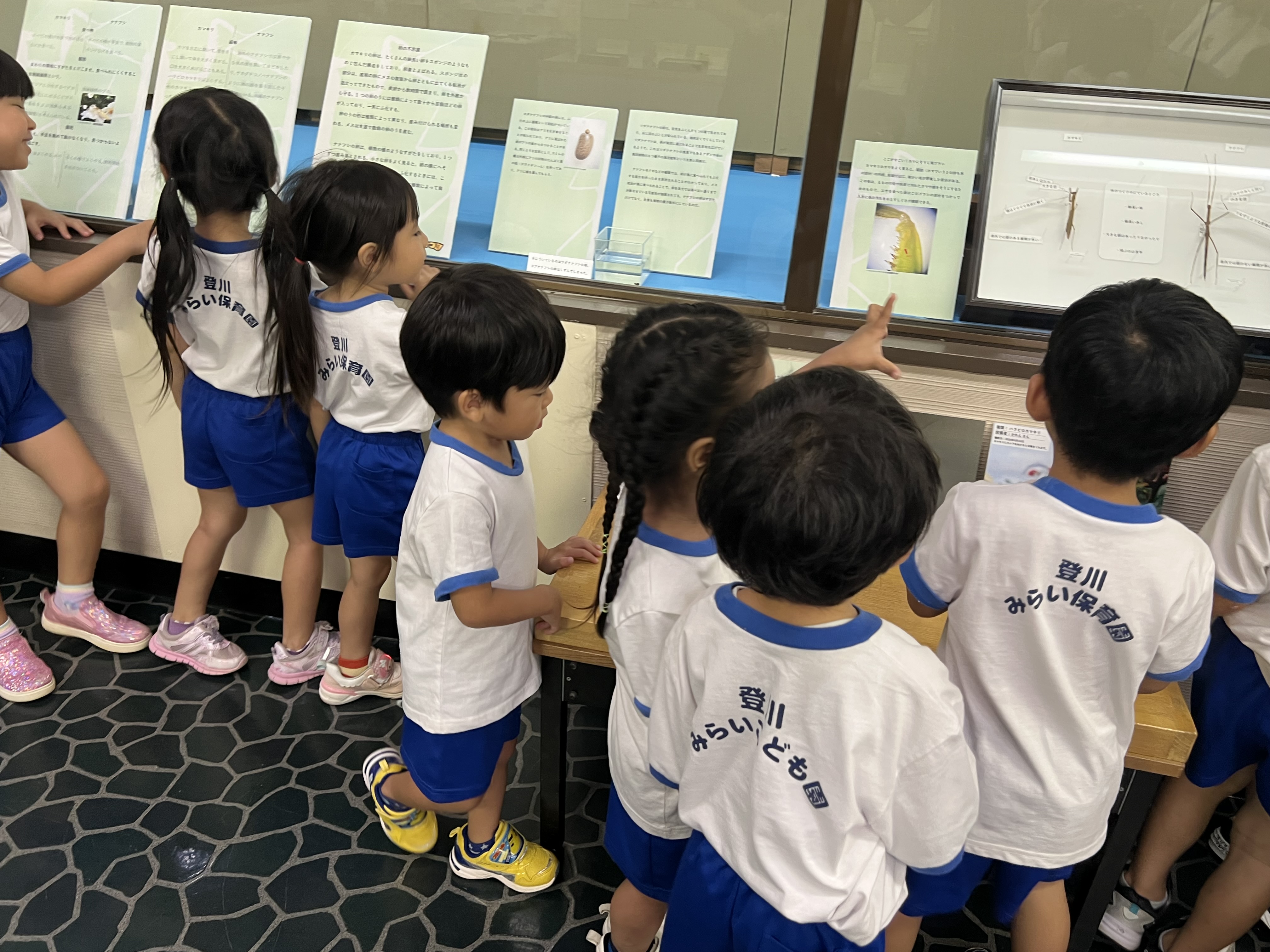 今日はらいおん組とぞう組でバスに乗って沖縄市立郷土博物館にカマキリやナナフシなどの虫の展示を見に行きました。たくさんの種類のカマキリやナナフシの標本を子どもたちは興味深そうに見ていました。そのあとは、博物館の中で沖縄市の歴史や自然についての展示物をみることができました!